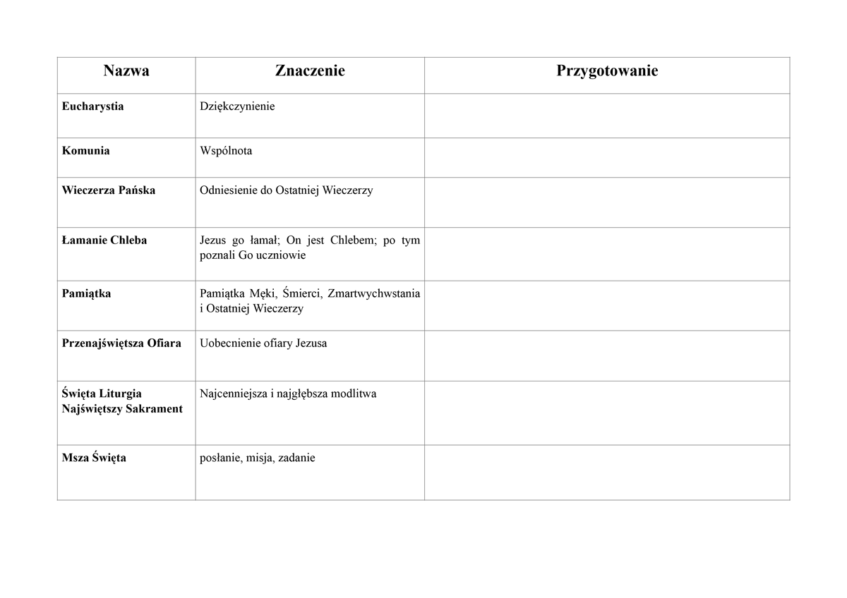 A teraz uwielbij Chrystusa za ten wielki dar, który nam zostawił, za to, że możesz uczestniczyć w Eucharystii, spożywać Jego Ciało i pić Jego Krew. Możesz to uczynić słowami Psalmu 34: